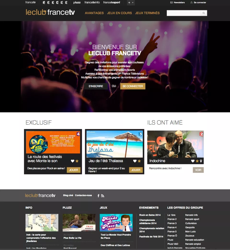 Développement site du Club France Télévisions architecture applicative Drupal France Télévisions jquery R&D sso webservices Développement et intégration de la nouvelle plateforme web du Club France Télévisions.