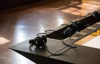 4 casques anti-vandales complètent le dispositif. Ils disposent d’un câble protégé, semi rigide qui en plus d’être solide, minimise les risques d’emmêlement. Pour chaque casque, deux bouton poussoir permettent de passer d’une langue à l’autre. Enfin, 1 prises mini-jack par casque permet de doubler la jauge si les visiteurs décident d’utiliser leurs propres écouteurs. Cela permet aussi un accès aux visiteurs très sensible à l’hygiène. Enfin, 2 postes supplémentaires « commande des langues + mini jack » mais sans les casques sont disposés de part et d’autre.