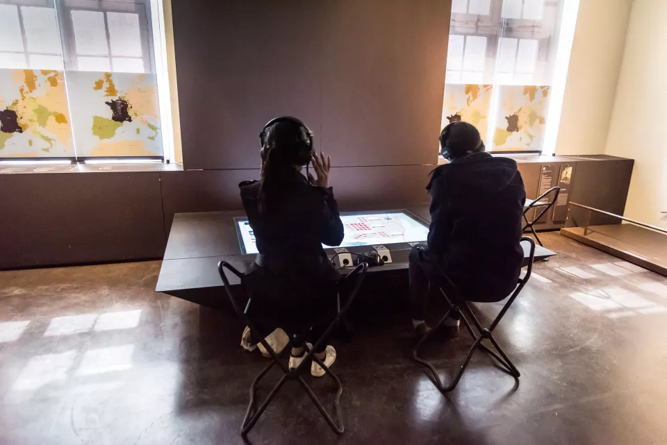 En groupement avec l’équipe de scénographie (Atelier MAW, Philippe Maffre), l’atelier graphique CL Design, et l’agence d’image de synthèse AGP, l’atelier Mosquito a conçu les dispositifs du nouveau parcours de visite du département moderne du musée de l’armée. Une grande proximitée a favorisé les échanges et les interactions entre les équipes et permet d’affiner la pertinence des scénarios