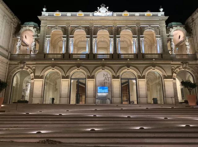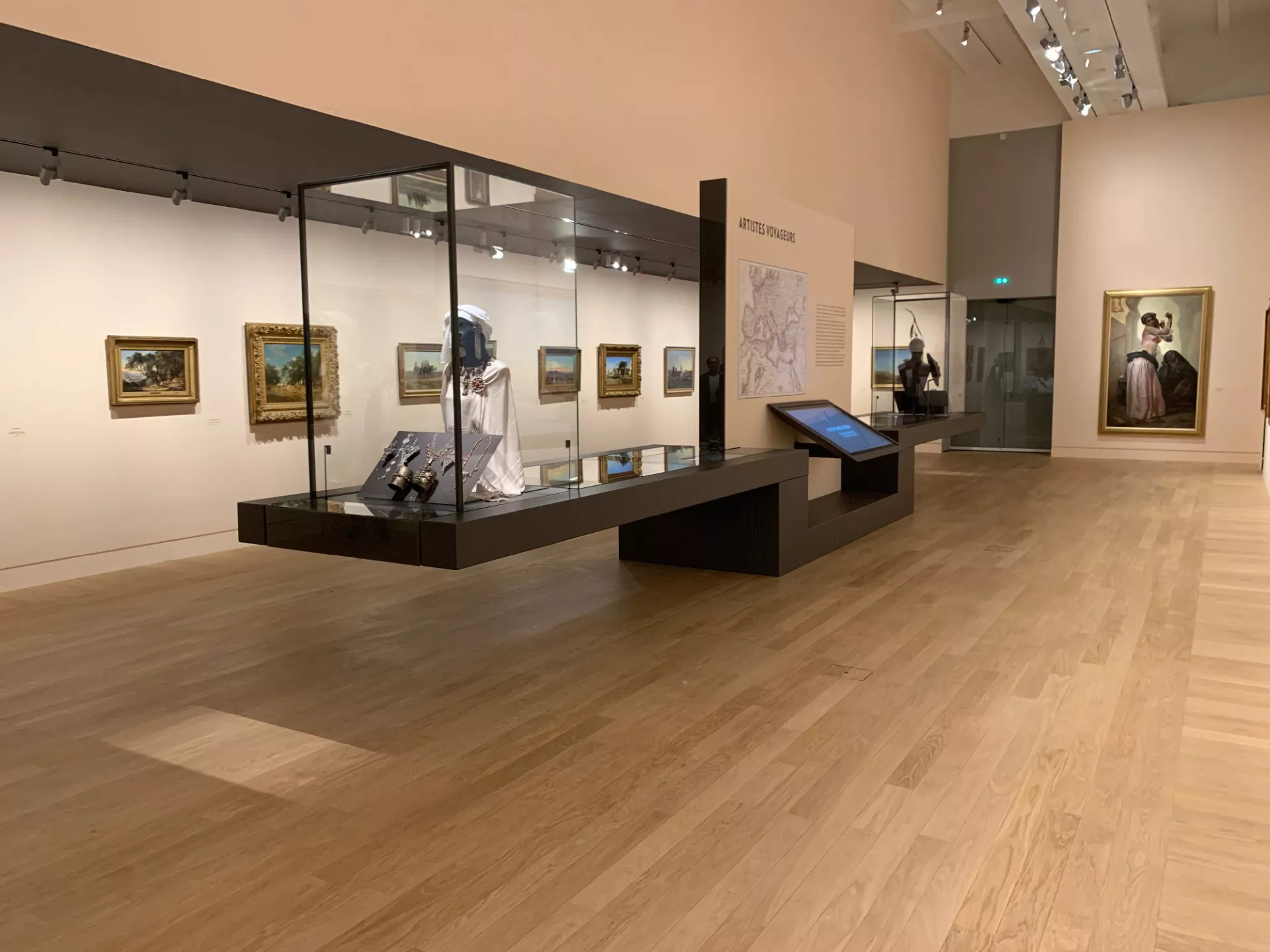 Dans le hall d’accueil, 2 pupitres tactiles permettent de découvrir l’histoire du musée (son architecture de 1880 à 2019), ainsi que la constitution de la collection.