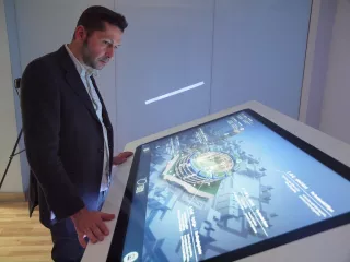 Une table tactile de 55’ pour présenter Doha Oasis, un projet du cabinet d’architecture de Nabil Gholam à Doha au Qatar.