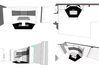 Les objets tangibles ont été remplacé par une page d’accueil à l’intérieur de l’application. Le son spacialisé est diffusé en stéréo sur 2 HP installés de part et d’autre de la table tactile.