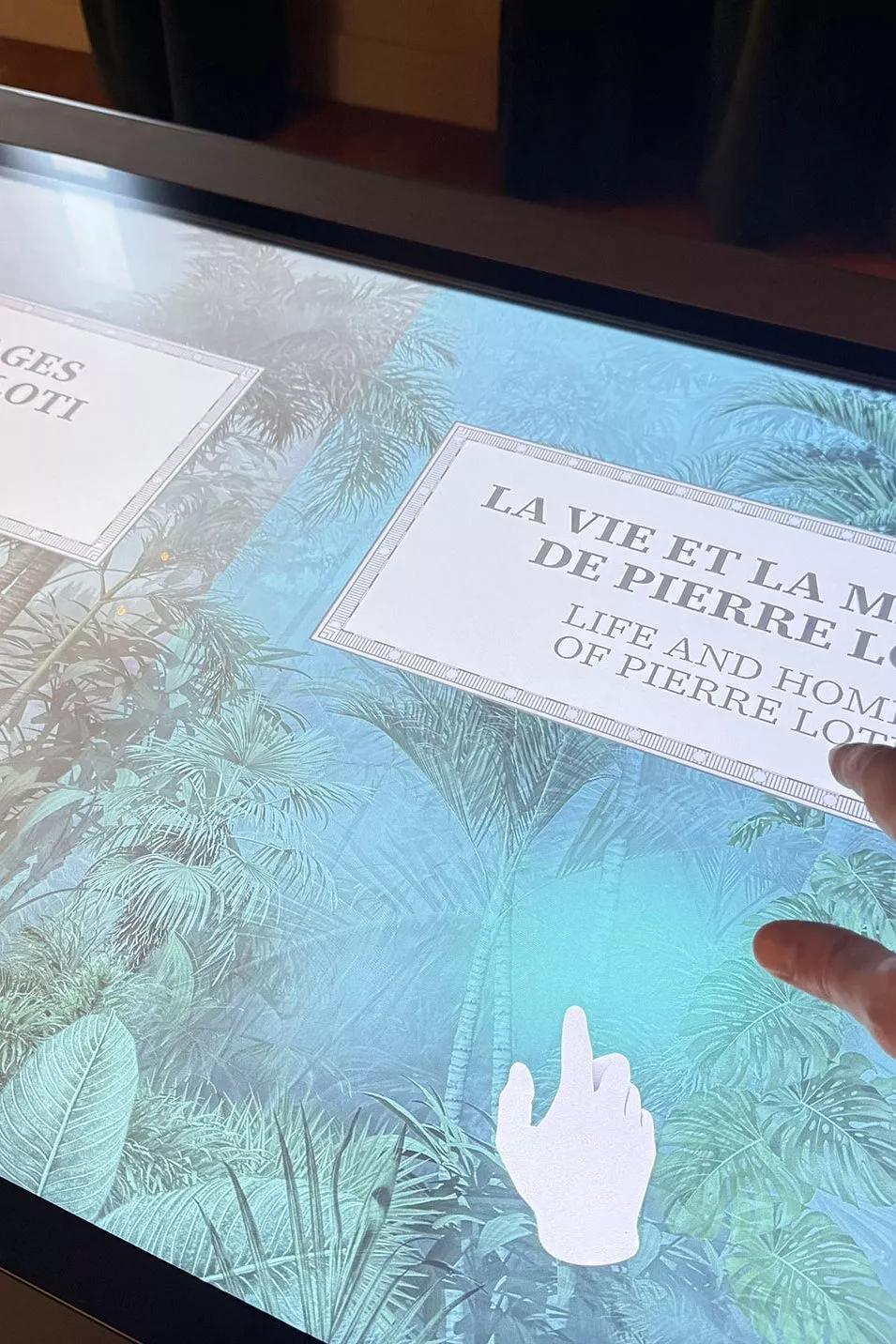 Au premier étage, un salon d’écoute permet d’entendre des extrais de lettres et de romans de Pierre Loti lu par des comédiens. A l’accueil une grande table numérique présente un large corpus de photos et de documents qui illustre les principaux voyages de Loti.